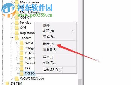 4、用户在Tencent文件夹下找到“TXSSO”的文件夹,women1右击此文件夹,然后选择“删除”。