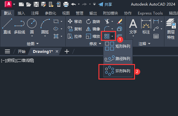 2、然后点击环形阵列。如下图: